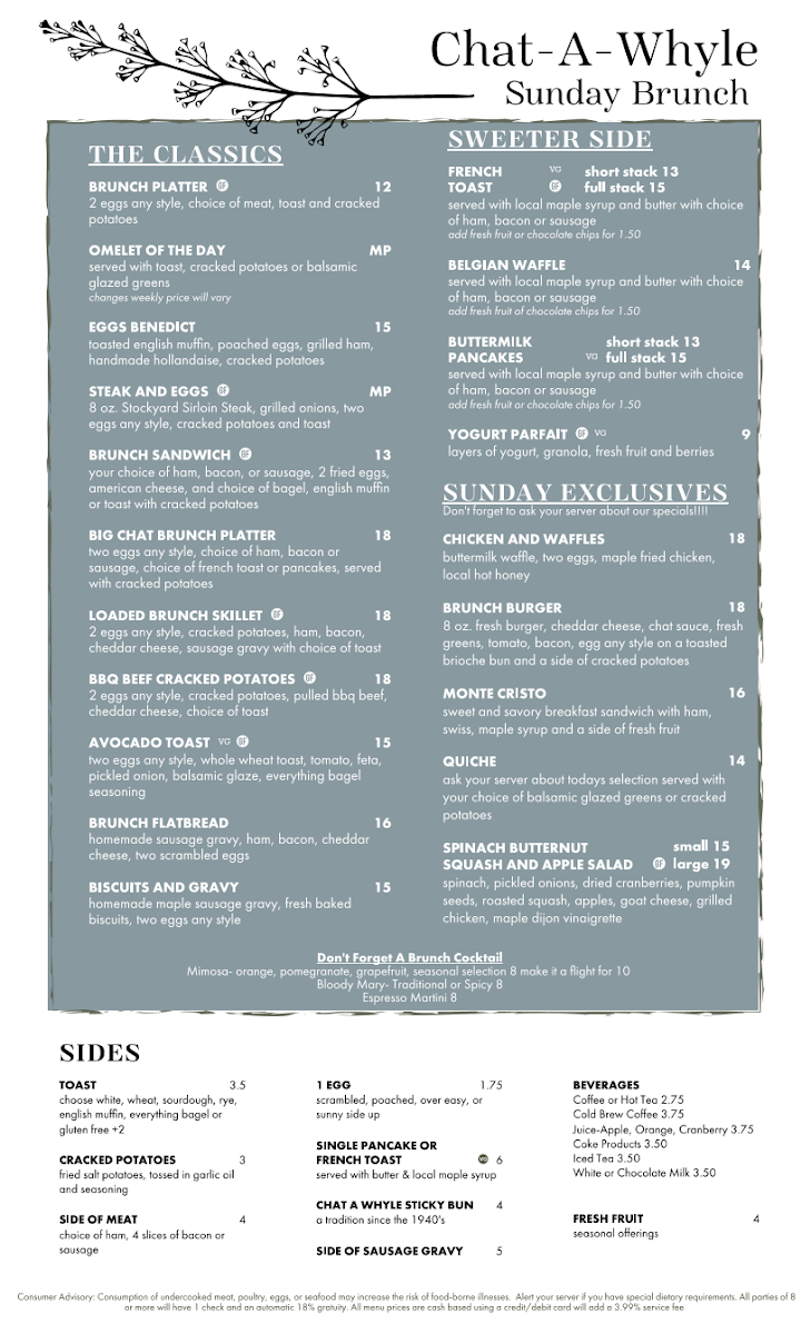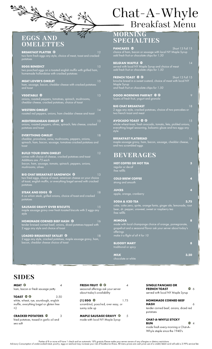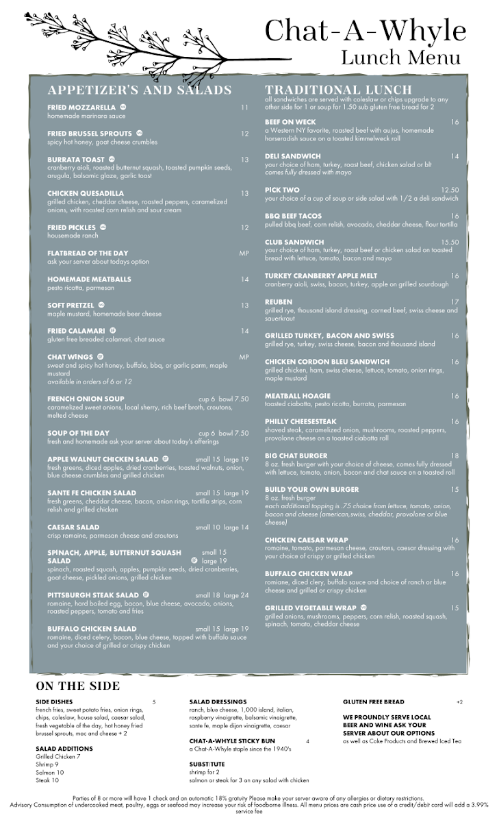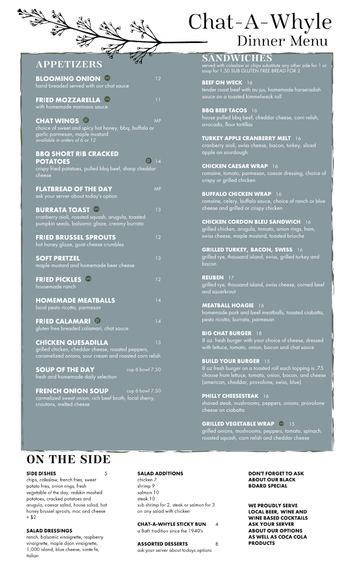 Chat-A-Whyle Restaurant Menu