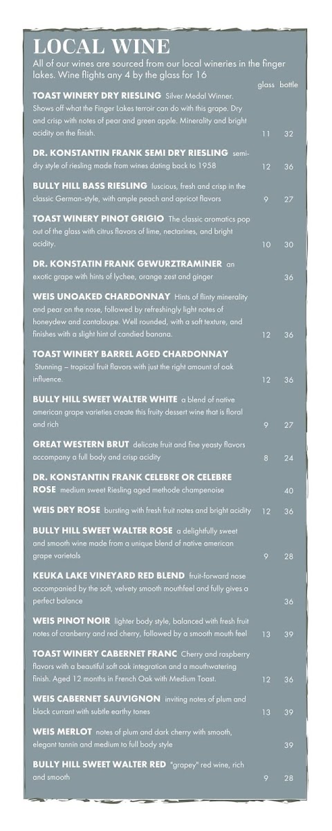 For those moments when a sweeter touch is welcome, selections like sticky buns or panna cotta fit nicely with the calm, laid-back setting, making it easy to wind down or enjoy a quiet treat alongside a thoughtfully curated glass from the wine bar. Whether sharing a meal with family, catching up with friends, or simply enjoying a quiet bite, the menu’s straightforward comfort and generous portions reflect the easygoing charm of the restaurant.